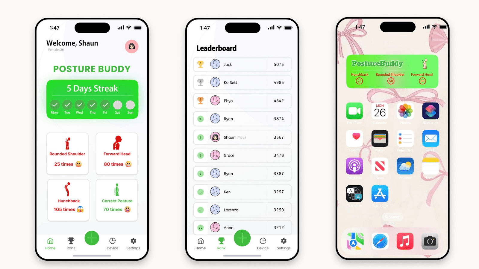 From interviews with team members, it became clear that the project’s foundation lies in a deep understanding of the limitations of traditional posture correction tools. Most conventional solutions rely on static devices, like braces, or subjective self-monitoring, which fail to provide personalized, real-time feedback. This gap inspired the PostureBuddy team to create an innovative, adaptive solution to empower users to take control of their posture and overall health.